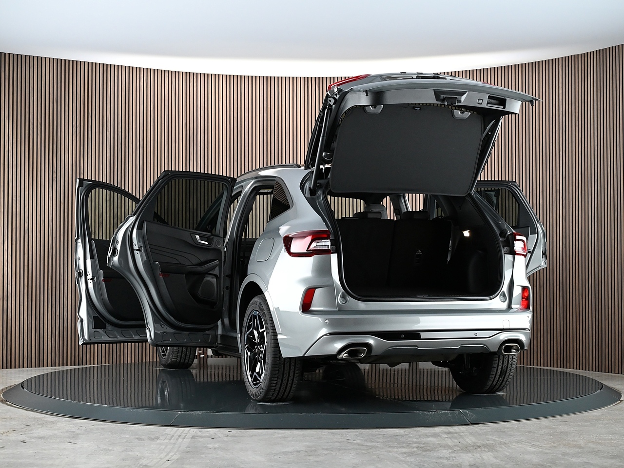 Upgrades and features include: 19" ST-Line Ebony Black Machined Finish Alloy Wheels, 360 Degree Camera, Winter Pack, Power Opening Panorama Roof, Heated Front Seats, Heated Steering Wheel, Front and Rear Parking Sensors, Memory Drivers Seat, Adaptive Cruise Control, Apple CarPlay, Android Auto, Rear Privacy Glass, Hands-Free Power Tailgate, Keyless Entry, Lane Keeping Aid with Lane Departure Warning, Cross Traffic Alert with Active Braking, Blind Spot Information System, Power Heated Folding Door Mirrors with Puddle Lights, Full LED Headlamps with LED Daytime Running Lamps, Ford SYNC 4 Navigation, ST-Line Body Styling.