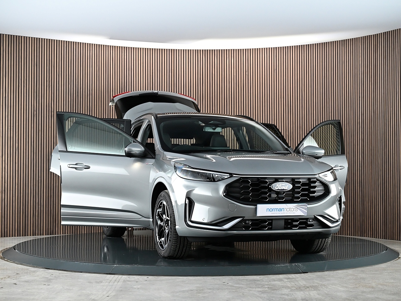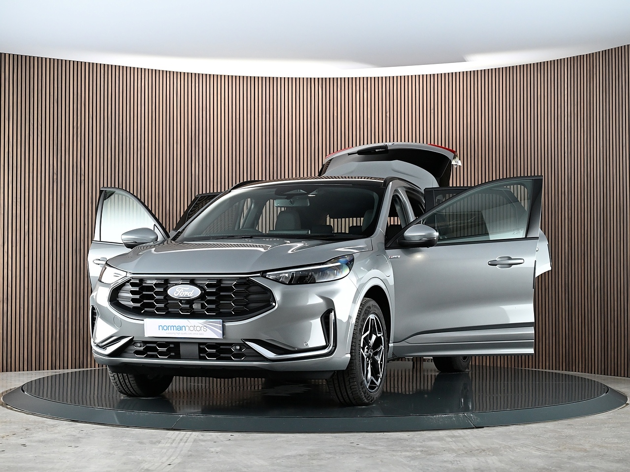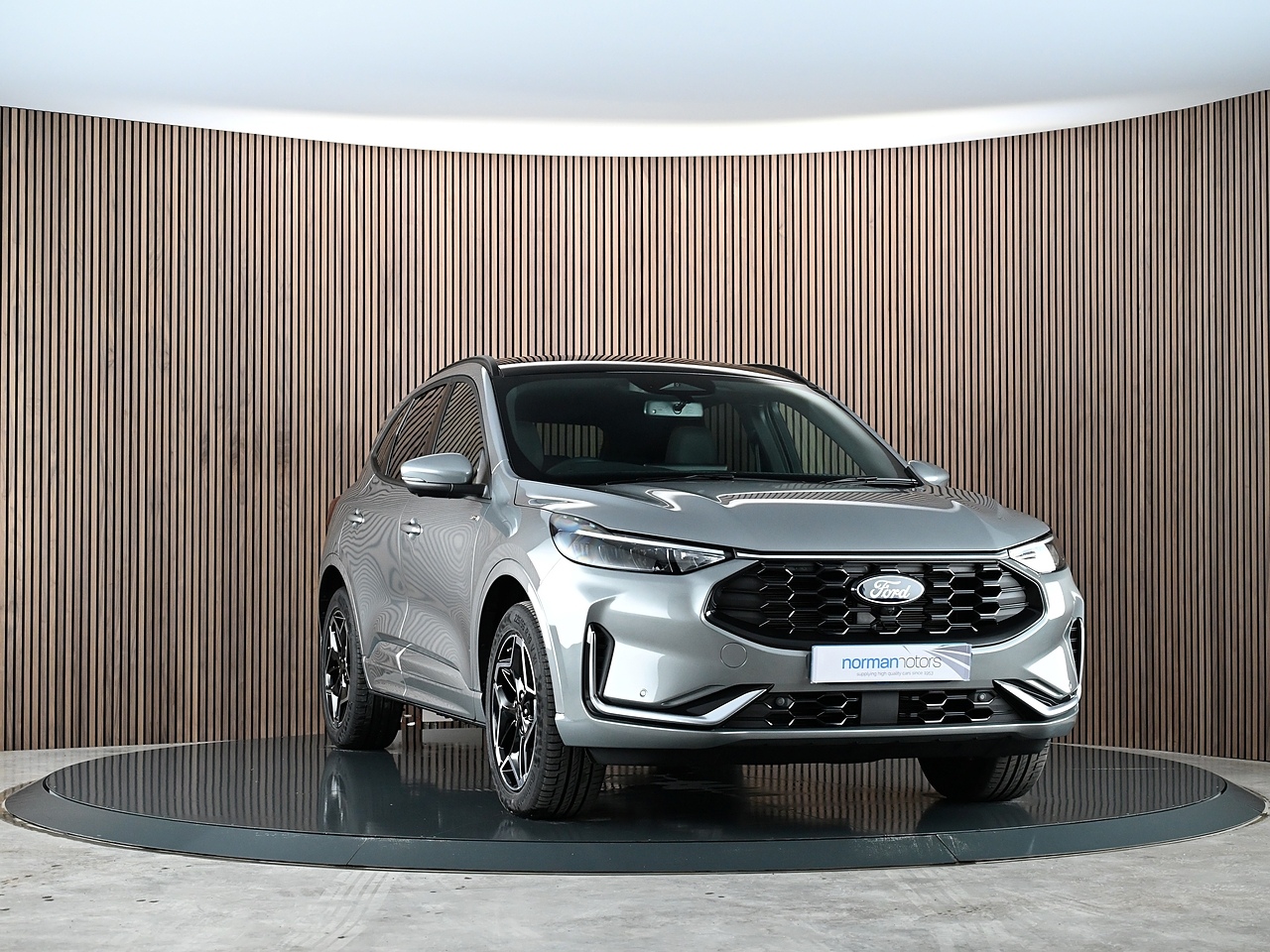 Norman Motors are excited to showcase this superb low mileage Ford Kuga 2.5 Duratec 14.4kWh ST-Line which is equipped with 360 Degree Camera & Winter Pack. Only 1 owner from new. Presented here in Solar Silver Metallic with Heated Black Neosuede Partial Premium Touch Sensico Sports Upholstery.