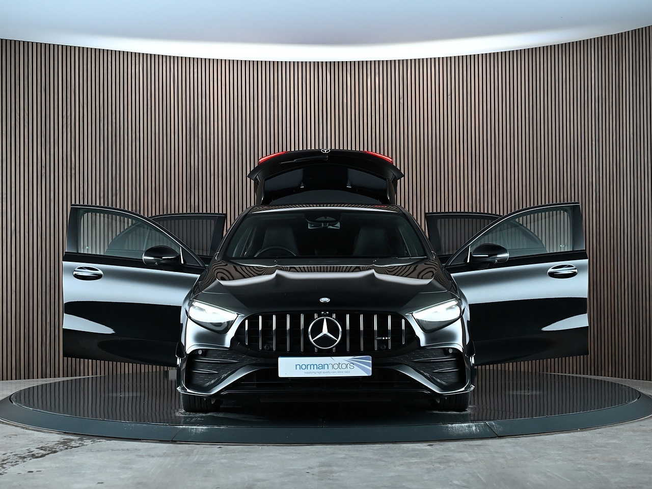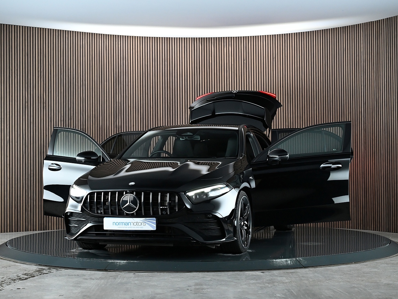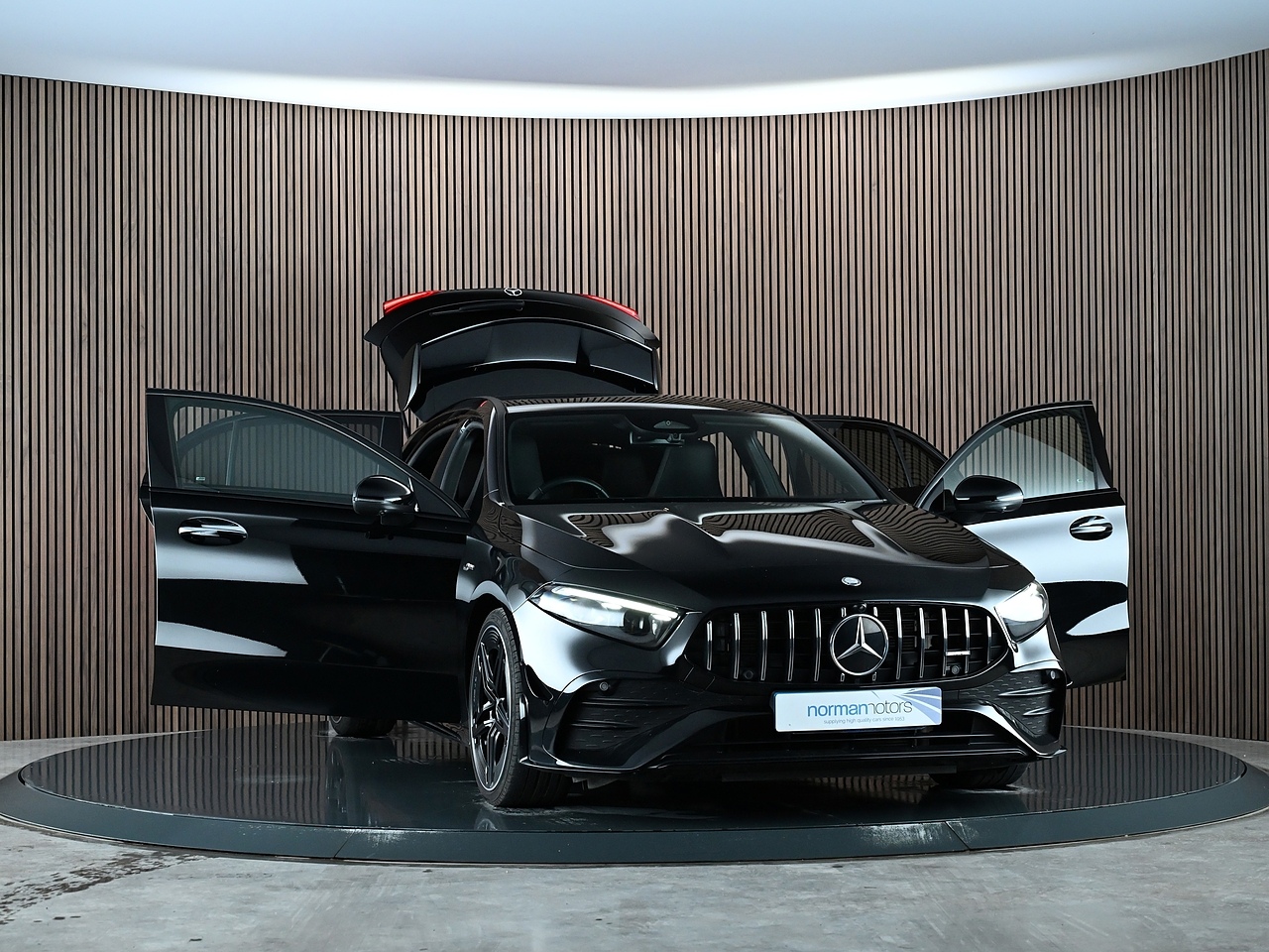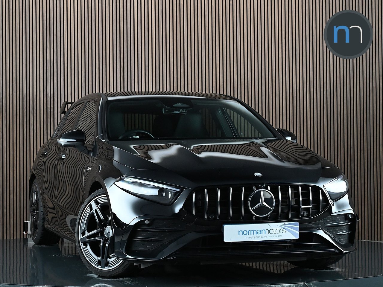 Norman Motors are proud to present this stunning 2024 Mercedes-Benz A35 AMG, a top-of-the-range example boasting an outstanding specification including Premium Pack, Aerodynamic Pack, AMG Night Pack, Electric Panoramic Glass Sunroof and Adaptive Cruise Control. It comes with a full Mercedes service history (last serviced 30/08/2025 @ 9,996 miles) and the remaining balance of the 3-year manufacturer’s warranty until 19/08/2027. Finished in striking Cosmos Black Metallic with Full Black Leather Upholstery, this A35 combines performance, luxury, and cutting-edge technology.