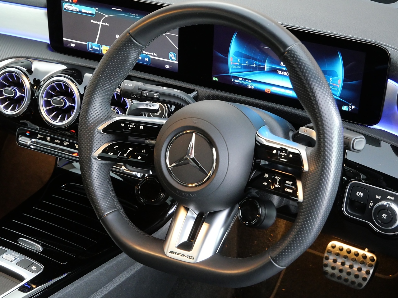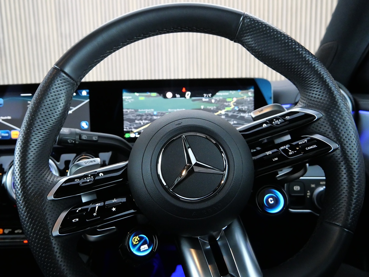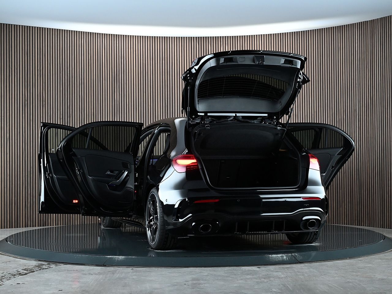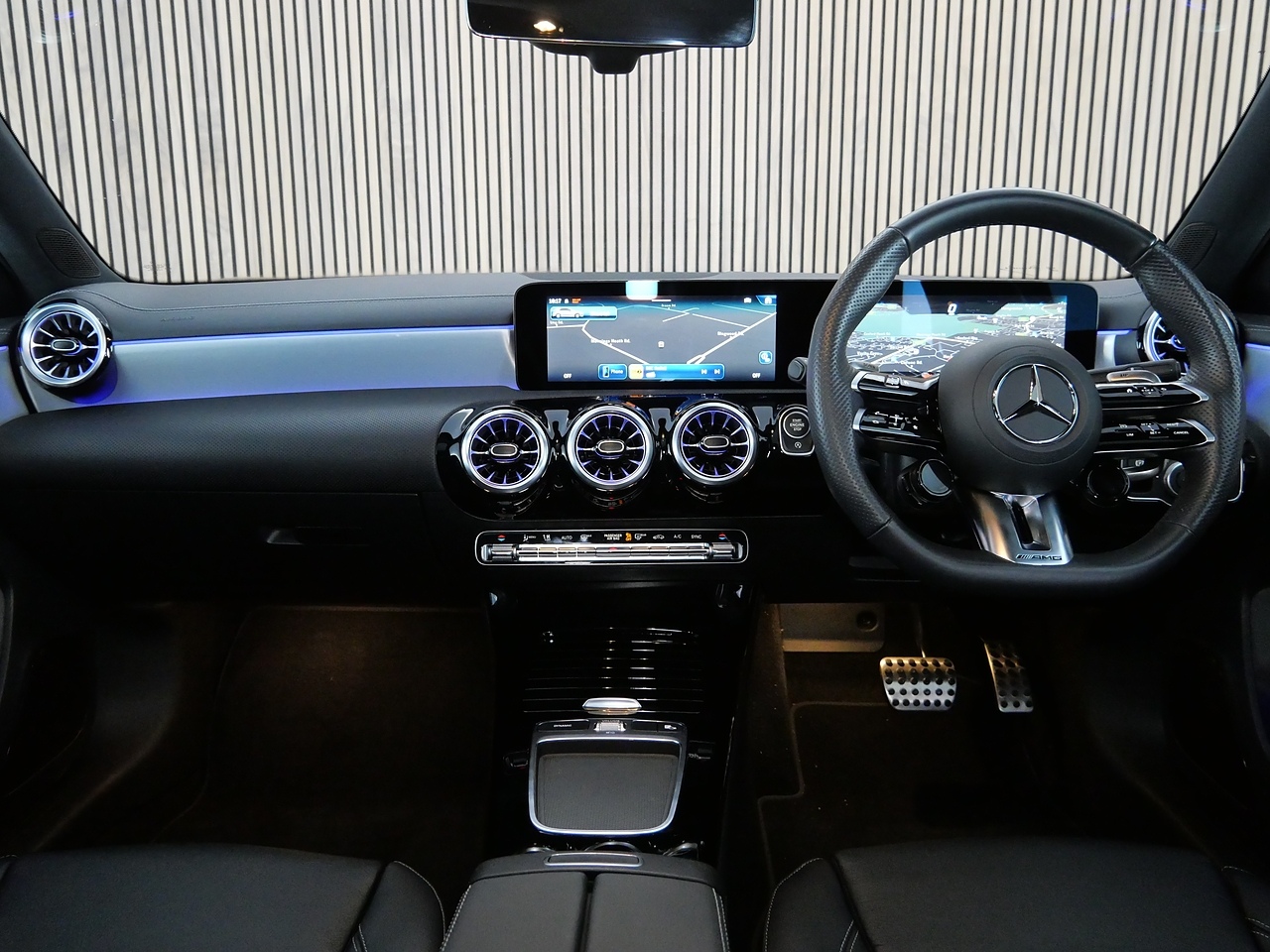 Features and upgrades include 19" AMG 5-Twin-Spoke Matt Black Alloy Wheels with High-Sheen Rim Flange, Electric Panoramic Glass Sunroof, Aerodynamic Pack, AMG Night Pack, Parking Pack with 360° Camera, Seat Comfort Pack, Winter Pack, Head-Up Display, Heated Memory Front Seats, Wireless Charging, Apple CarPlay, Android Auto, Adaptive Cruise Control, Privacy Glass, AMG Adaptive Suspension, MBUX Interior Assistant with 3D Camera, AMG Leather Package, AMG Performance Steering Wheel in Nappa Leather, AMG Sports Exhaust System, AMG Bodystyling, Traffic Sign Assist, Blind Spot Assist, 64-Colour Ambient Lighting, MULTIBEAM LED Headlights with Adaptive Highbeam Assist, Active Lane Keeping Assist, Keyless Entry & Go, Electrically Adjustable and Heated Door Mirrors with Integrated LED Indicators, MBUX Augmented Reality Navigation, Advanced Mercedes-Benz Sound System, and Dual Bluetooth Interfaces.