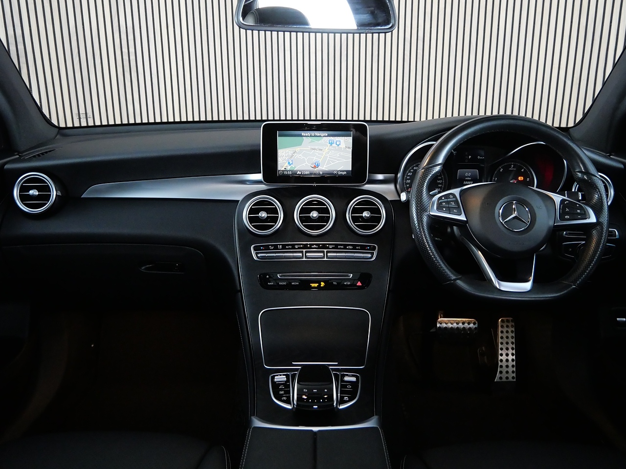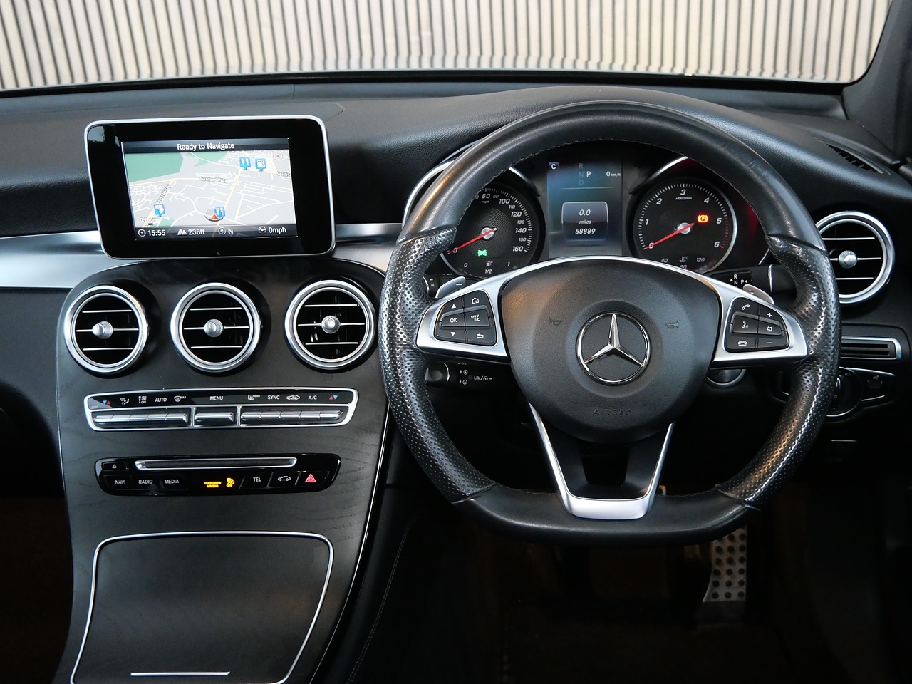 • Steering Wheel - 3-spoke Multi-function AMG in Black Leather with Flattened Bottom Section and Chrome Inserts and Perforated Leather in Grip Area
